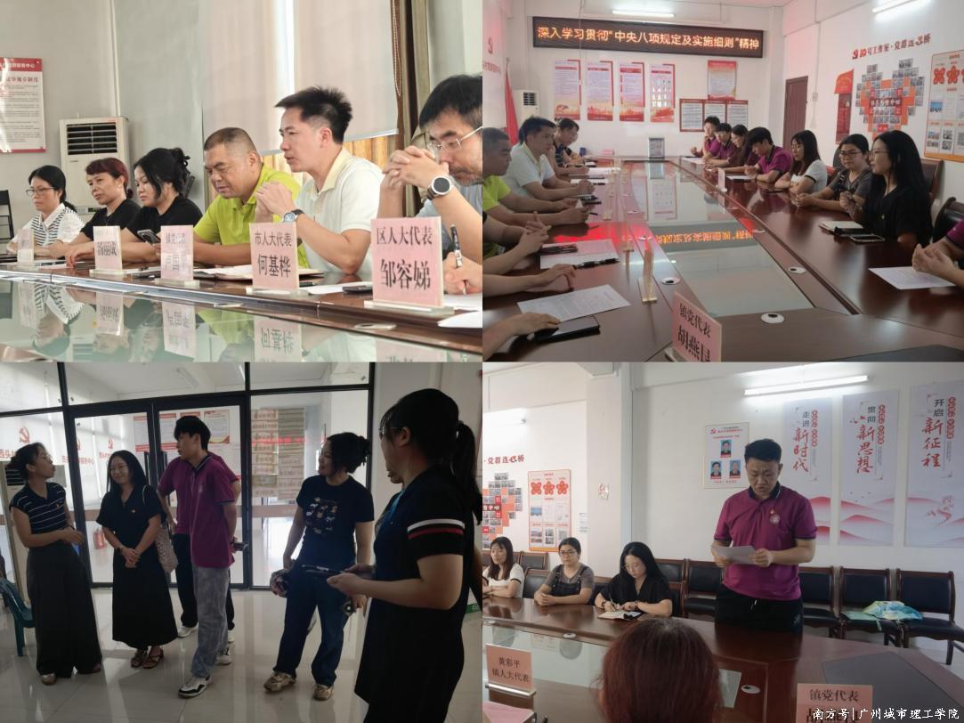 实践期间,花都区狮岭镇的领导干部、人大代表与我校师生举行了专题座谈会。双方围绕人居环境整治、祠堂文化保护传承、儿童心理健康守护、科技助农项目等议题进行了交流,达成多项合作意向。会上,西头村党支部副书记邹容娣结合自身,从大学生村官到村支书的成长经历,生动诠释“有作为才有位”的时代担当,引发了青年学子投身基层、青春报国的强烈共鸣。